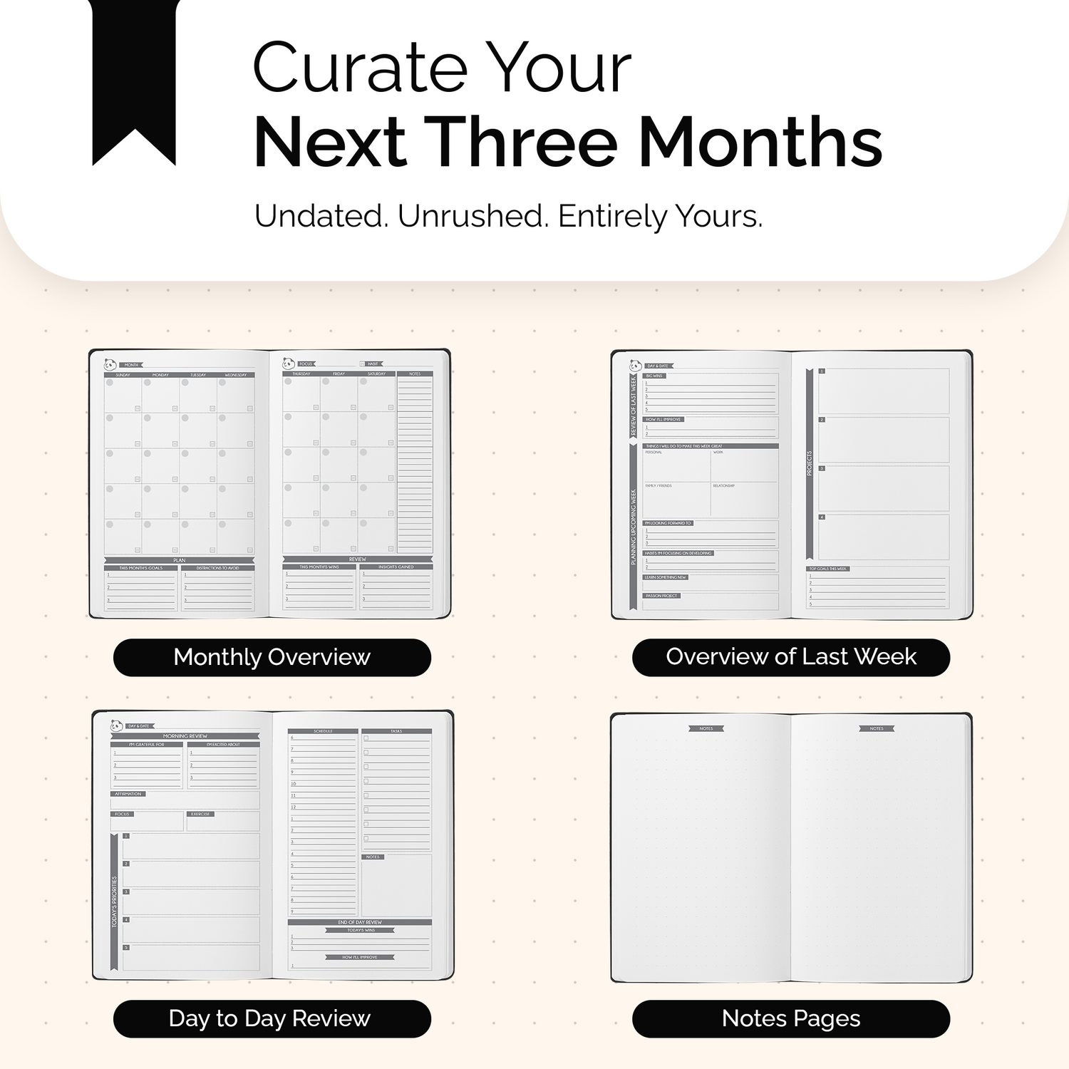 3 Month Panda Classic - Daily Planning in 3 Sections